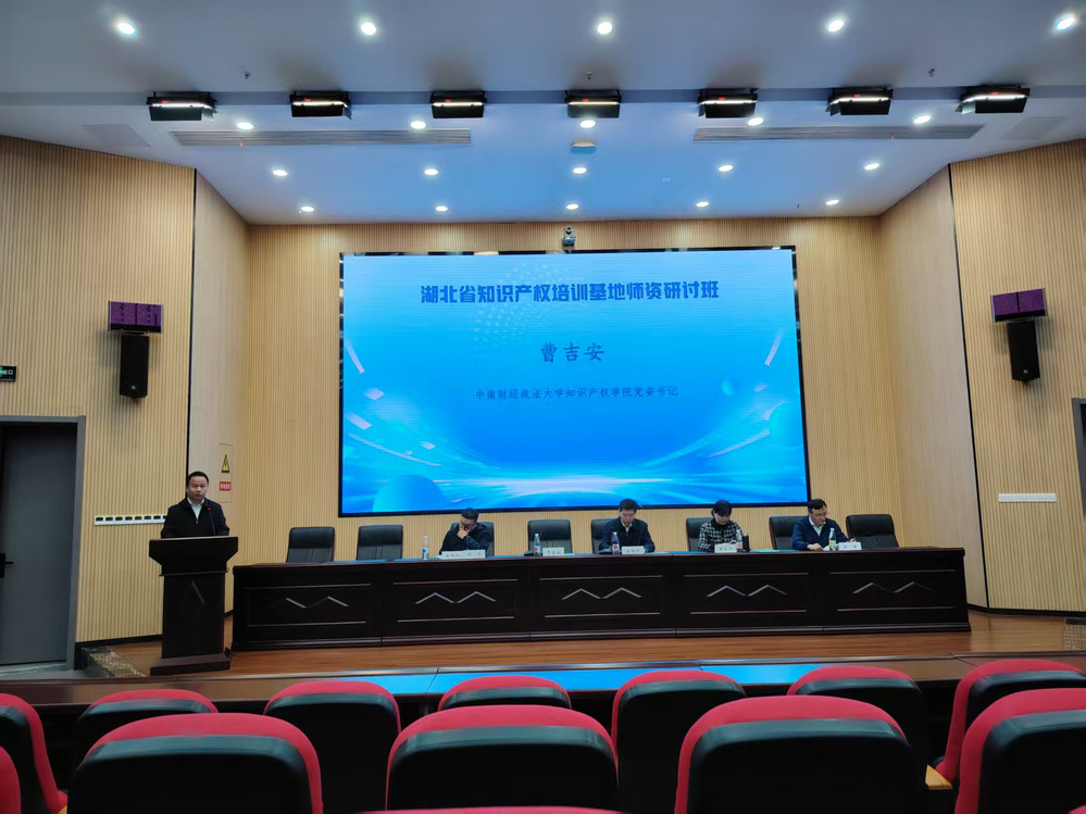 为深入学习贯彻党的二十届四中全会精神,全面落实《知识产权强国建设纲要》,加快推进知识产权强省建设,进一步强化省知识产权培训基地师资培养,政法学院院长、基地主任王贵东,科研处副处长库在强,基地教师吴光辉于2025年11月17日至19日参加了由省知识产权局主办、中南财经政法大学知识产权学院(知识产权研究中心)承办的湖北省知识产权培训基地师资研讨班,省知识产权局副局长梁绍斌、人事处处长郭涛参加了开班仪式。